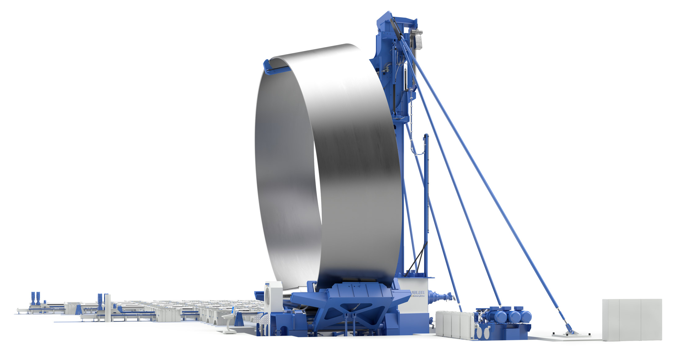探索我们虚拟展厅中用于风塔生产的HAEUSLER卷板机。