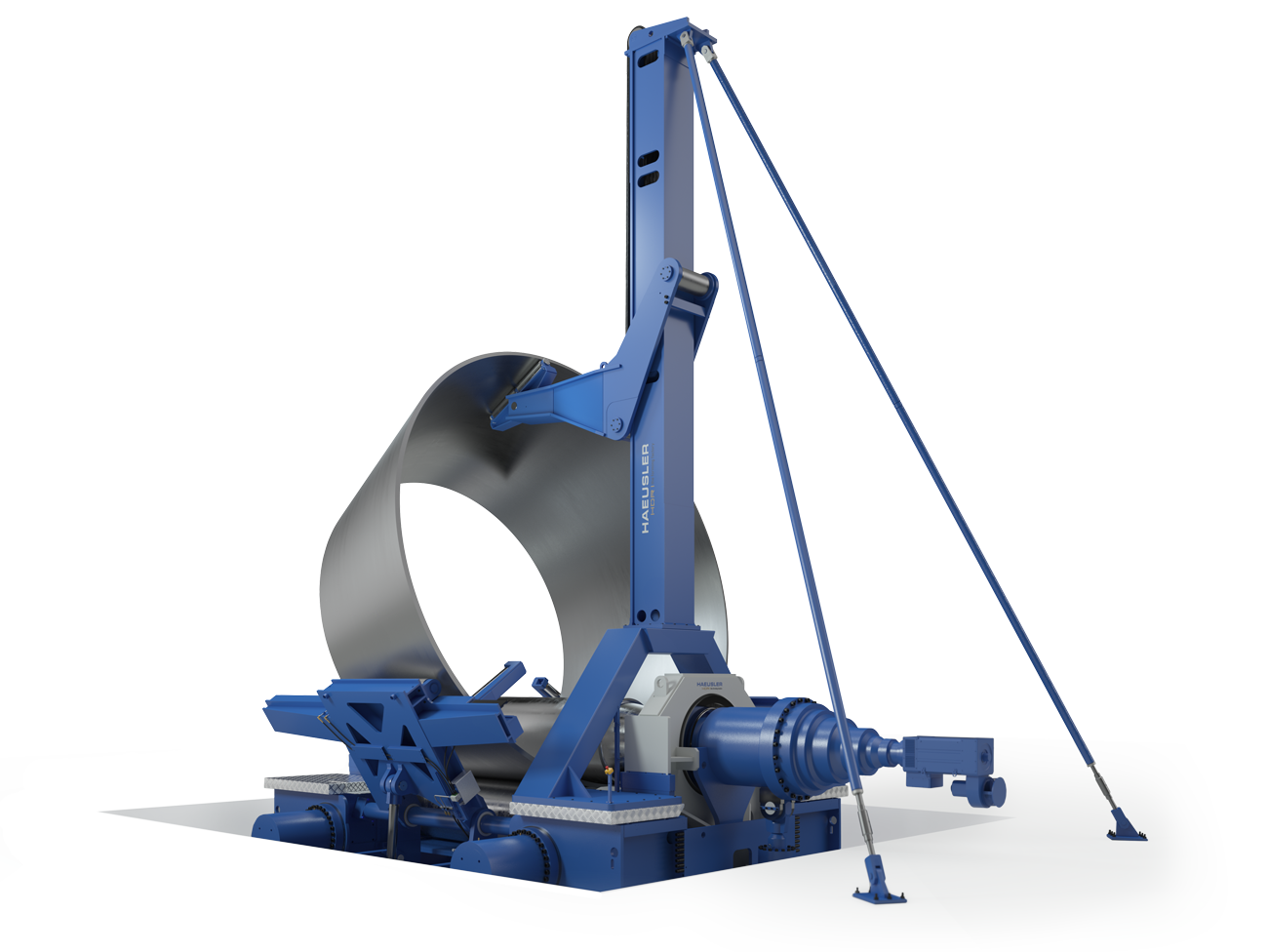 HAEUSLER(豪斯乐)开发的风力塔筒制造专用送料台,适用于在设备上快速定位和输送长板。