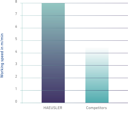 两个图示直观地说明了HAEUSLER混合动力驱动系统的两大重要优势。当卷制和校圆大直径工件时,旋转速度提高60%尤为重要。另外,通过采用HAEUSLER混合动力驱动系统将大大节省设备的维护费用。